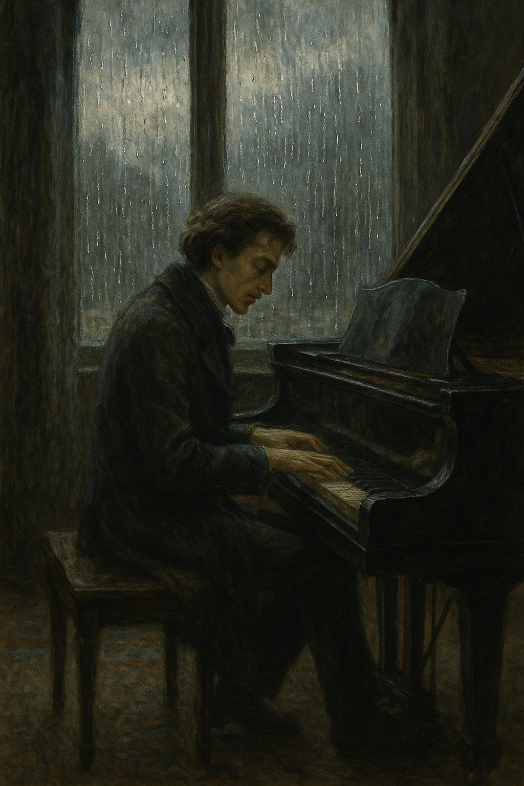 “쇼팽은 그날 밤, 폭우 속에서 창가에 앉아 있었다. 그는 피아노로 무언가를 연주했는데, 마치 쏟아지는 빗방울을 그대로 음악으로 옮긴 것처럼 들렸다.”