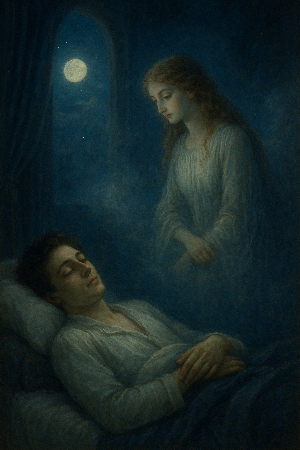 ‘잠’은 단순한 신체적 휴식이 아니라, 현실을 초월해 이상적인 존재를 만나는 통로로 그려진다. 이 잠든 상태는 죽음의 은유이기도 하며, 그만큼 절대적인 갈망과 헌신을 내포한다.